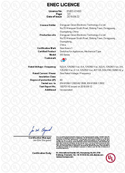 德傲微動開關CQC CB CE證書正式下發
